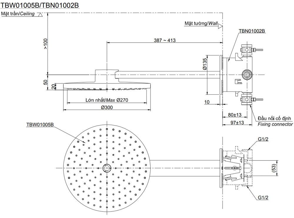 - Thông số kỹ thuật TBW01005B/TBN01002B