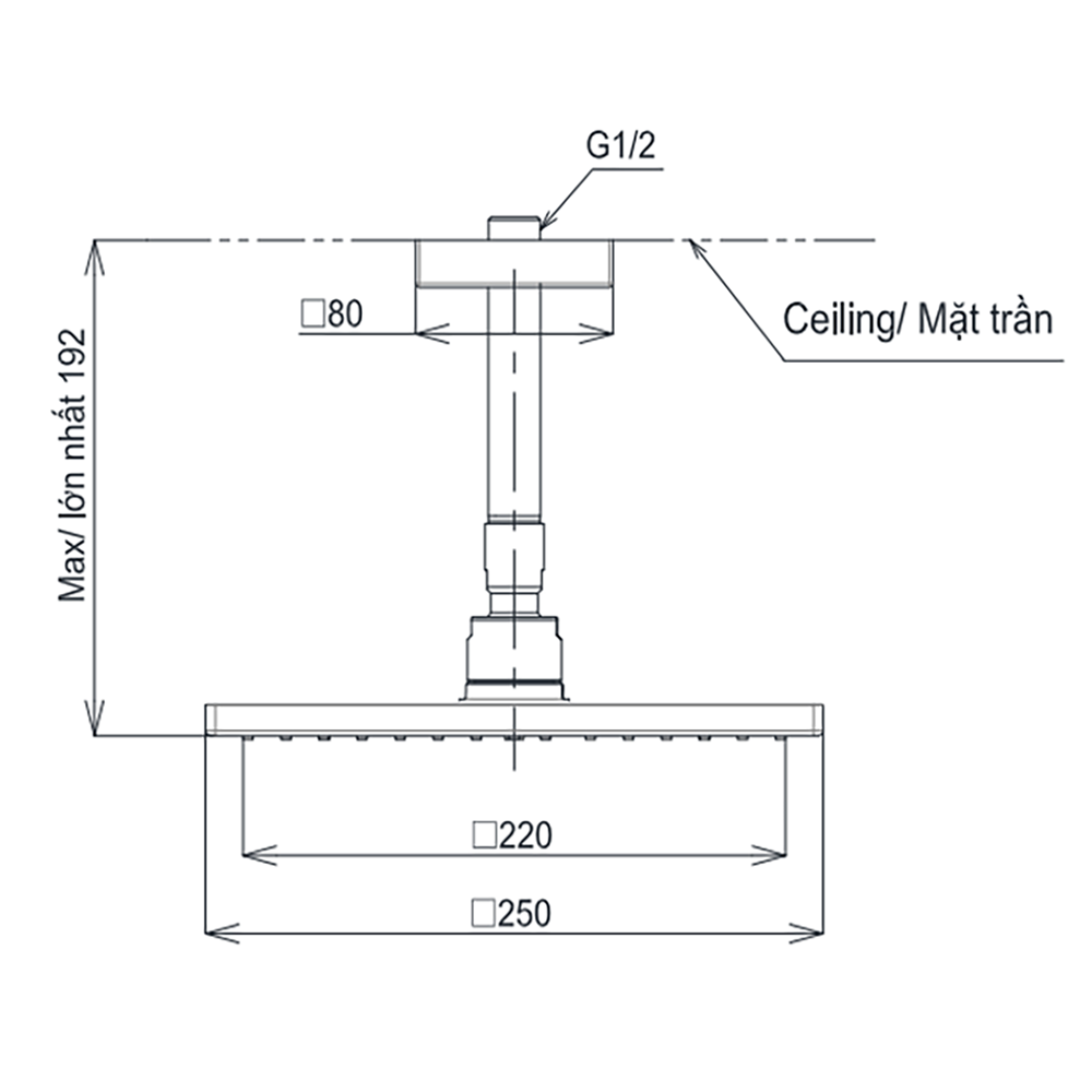 | Đường kính | : | 250x250mm |