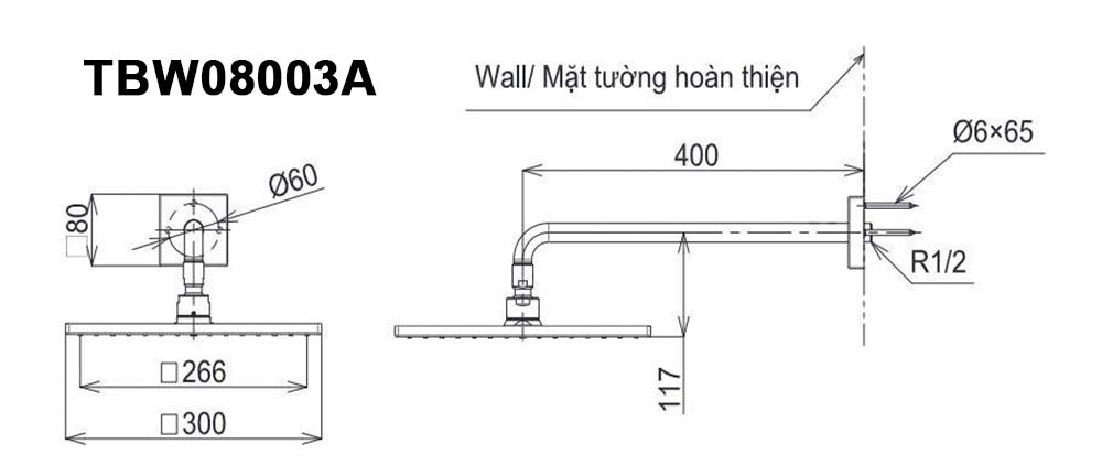 Mã TBW08003A có kích thước được nâng lên 300mm, và ngoài ra còn có sẵn các kích thước nhỏ hơn như 200mm và 250mm để khách hàng có thêm sự lựa chọn phù hợp với không gian của họ.
