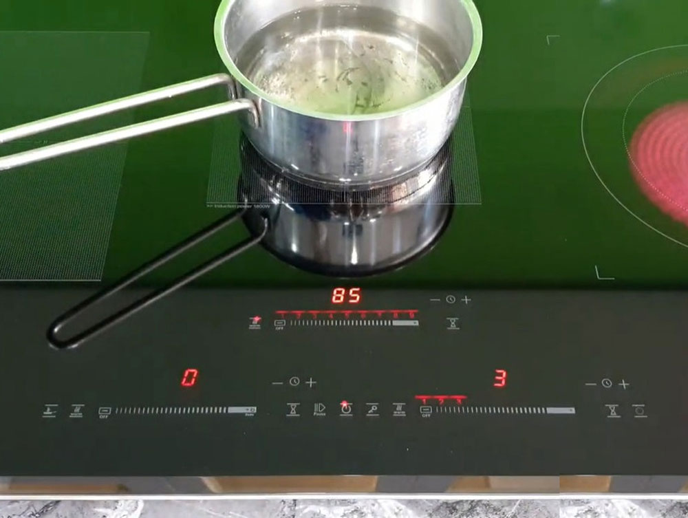 - Overflow protection: cảm biến đặt dưới bảng điều khiển dừng mọi hoạt động của bếp khi phát hiện nước / thức ăn tràn lên bảng điều khiển
