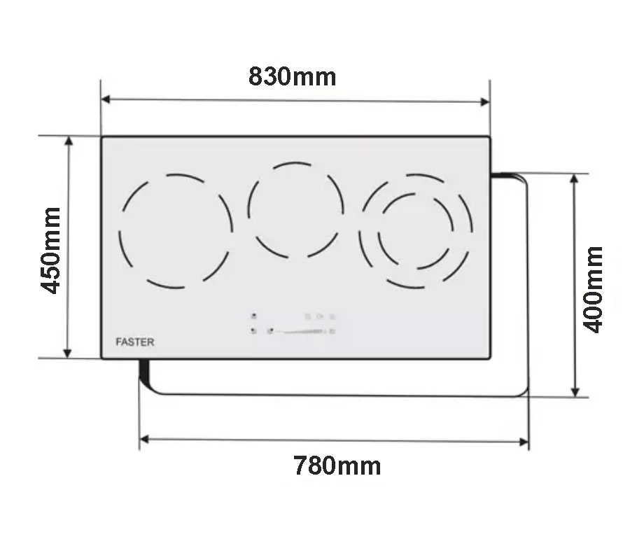 Bản vẽ kích thước Bếp điện từ ba FASTER FS MIX388