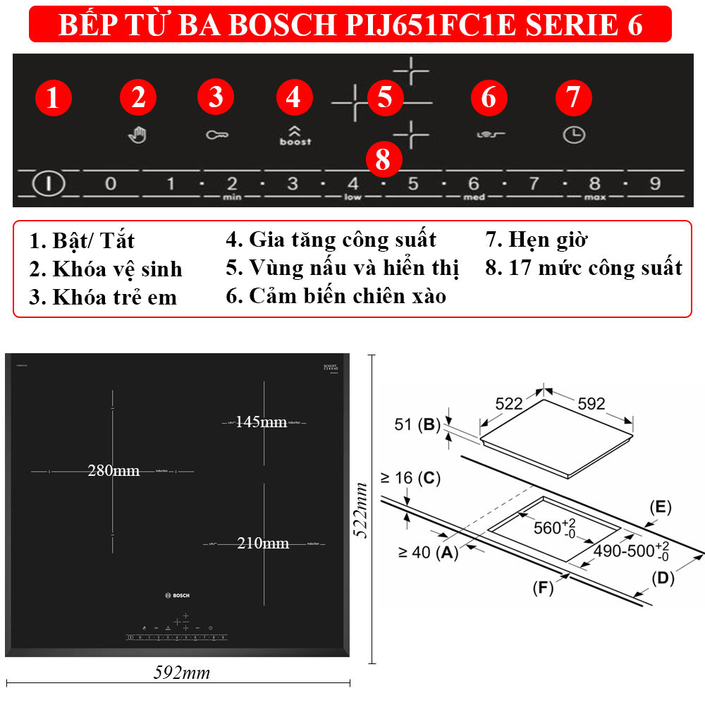 TÍNH NĂNG TRÊN BẾP TỪ BOSCH PIJ 651FC1E SERIE 6