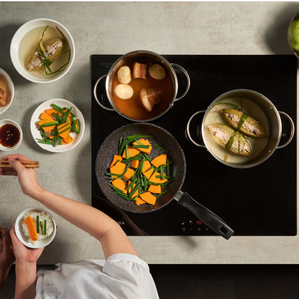 - Tự động phát hiện và tắt vùng nấu khi không có nồi.