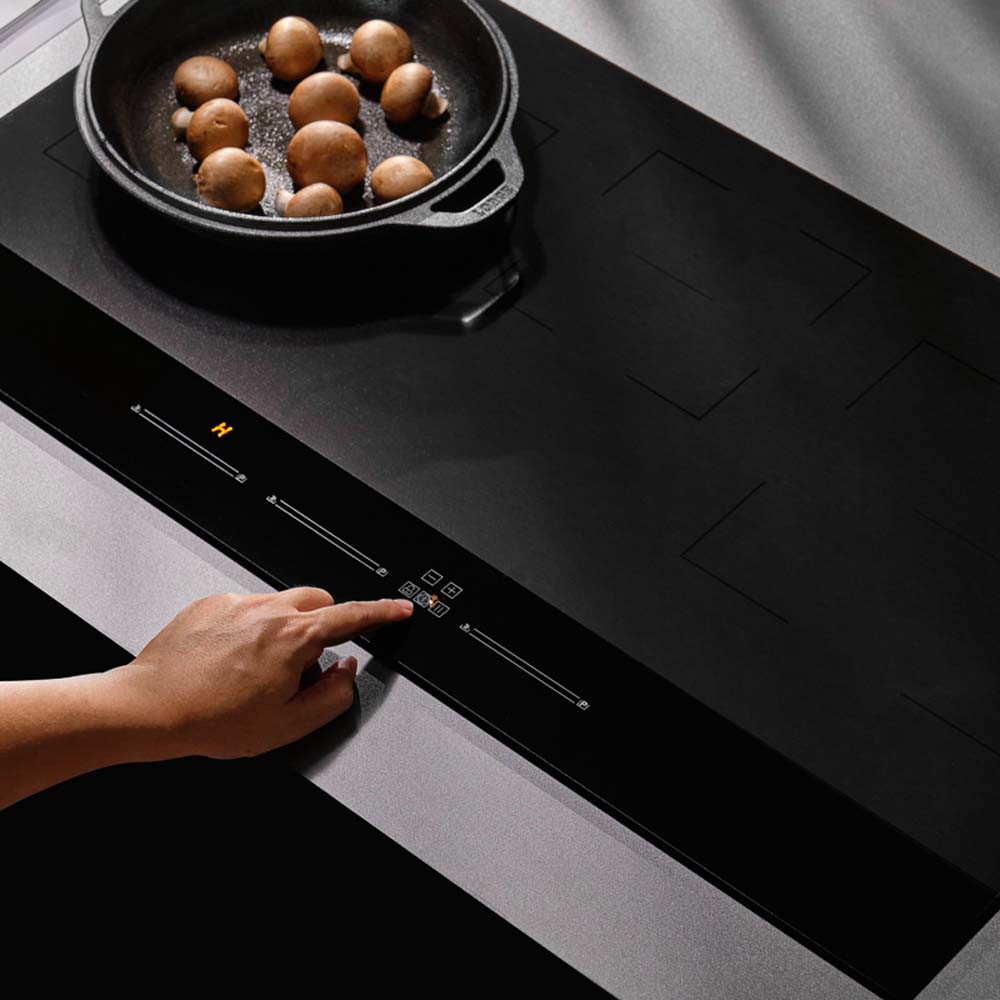 - Bảng điều khiển cảm ứng trượt slide và màn LED riêng biệt cho từng vùng nấu.