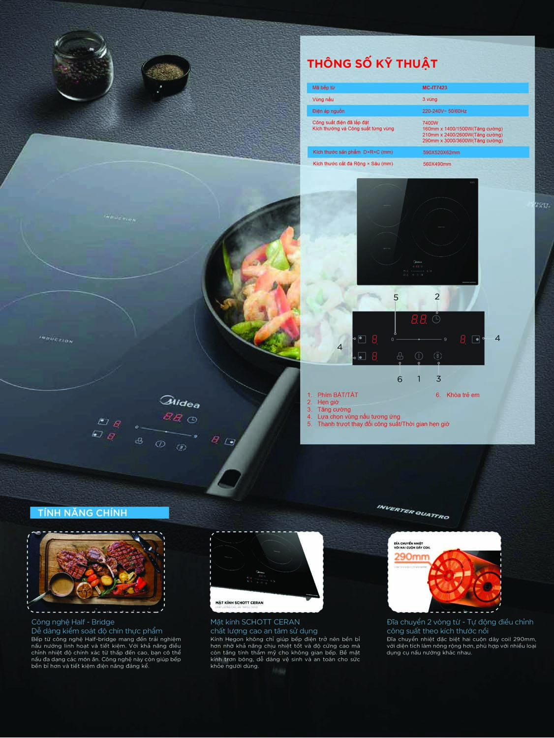 Tính năng Bếp từ ba MIDEA MC-IT7423