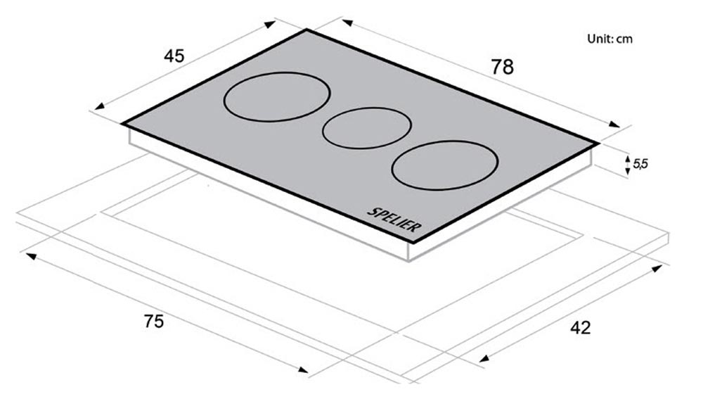 Bản Vẽ Kỹ Thuật Bếp từ ba SPELIER SPM-938I