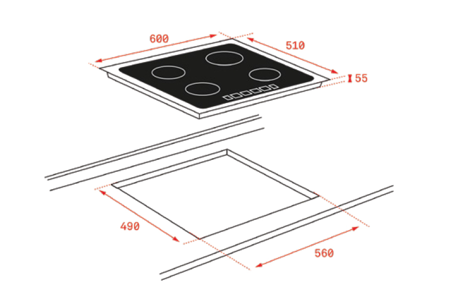 | Kích thước bếp | 600x510x50 mm |