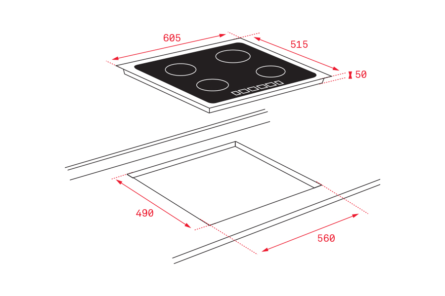 | Kích thước bếp | 600X510X50 mm |