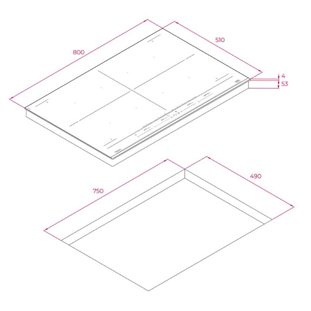 Bản vẽ kích thước Bếp từ bốn TEKA IZF 88700 MST BK 112500029 toàn vùng nấu