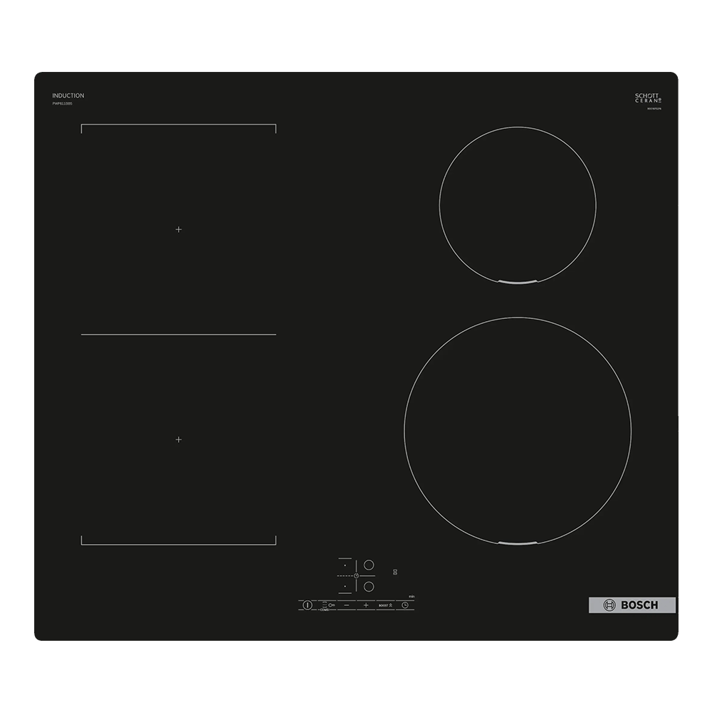 Bếp từ Bosch PWP611BB5E thuộc dòng Serie 4, nổi bật với thiết kế hiện đại và nhiều tính năng tiện ích: