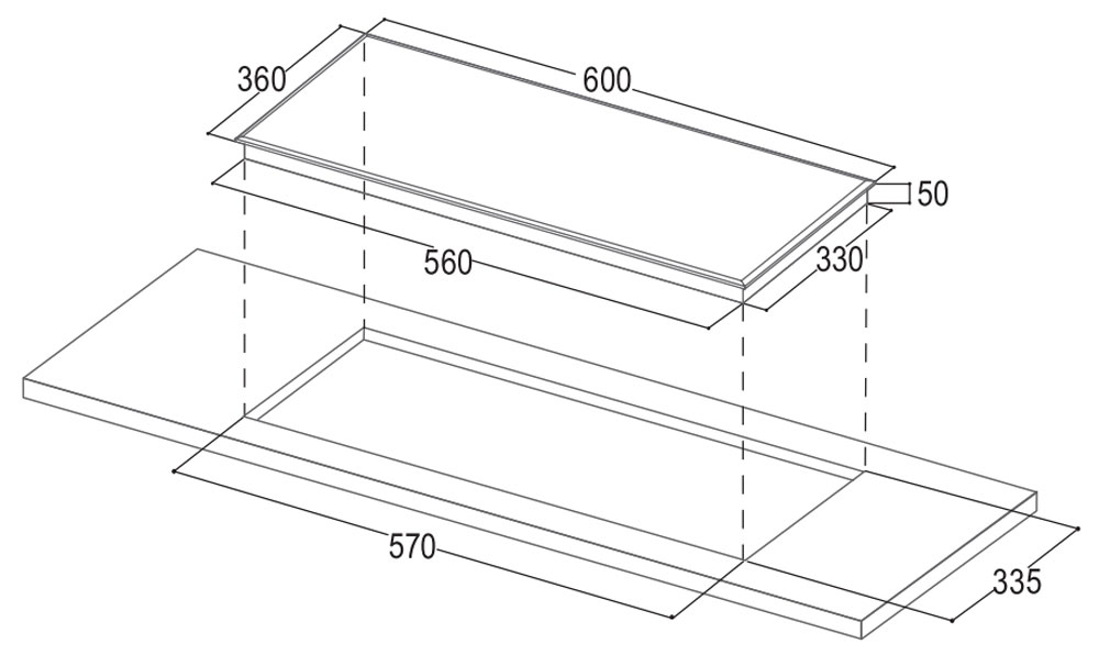 Bản vẽ kích thước Bếp từ đôi BAUER BE 360SA