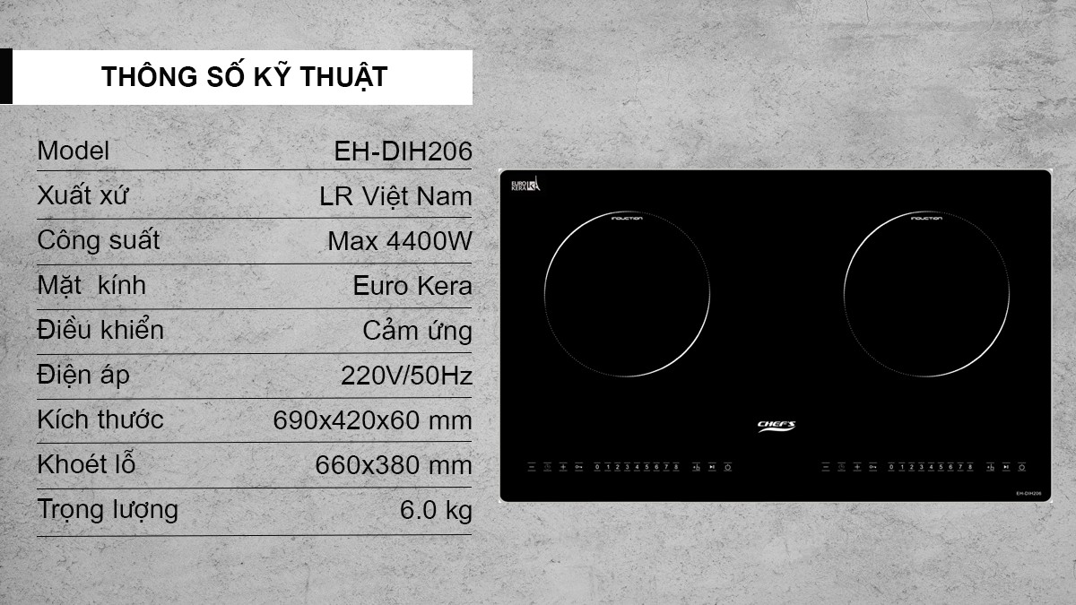 Thông số kĩ thuật Bếp từ đôi CHEFS EH-DIH206