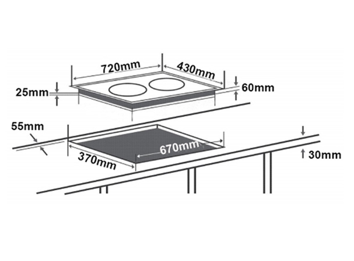 Bản vẽ kích thước Bếp từ đôi CHEFS EH-DIH326