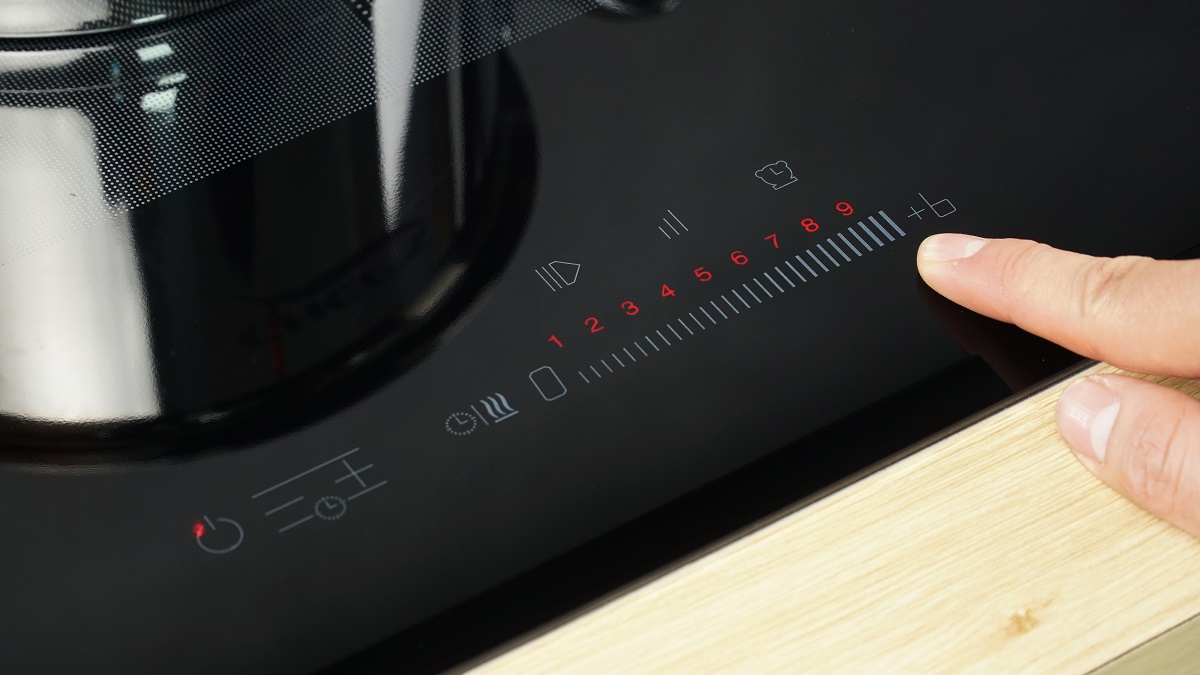 - Bảng điều khiển dạng cảm ứng trượt slide với 9 mức công suất dùng độc lập cho từng vùng nấu