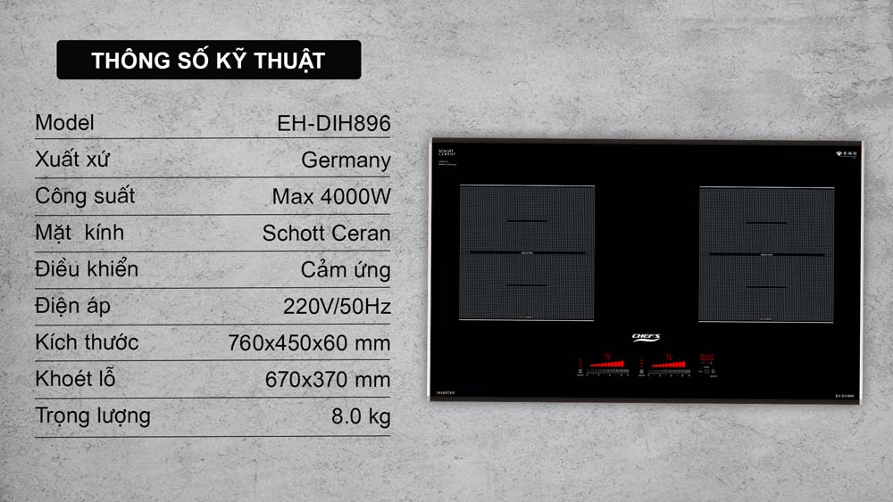 Thông số kĩ thuật Bếp từ đôi CHEFS EH-DIH896