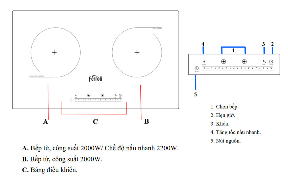 Tính năng Bếp từ đôi FERROLI Flash RN