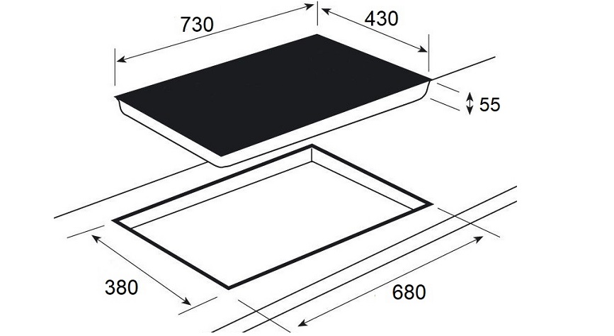 - Kích thước bếp: 730x430x55mm