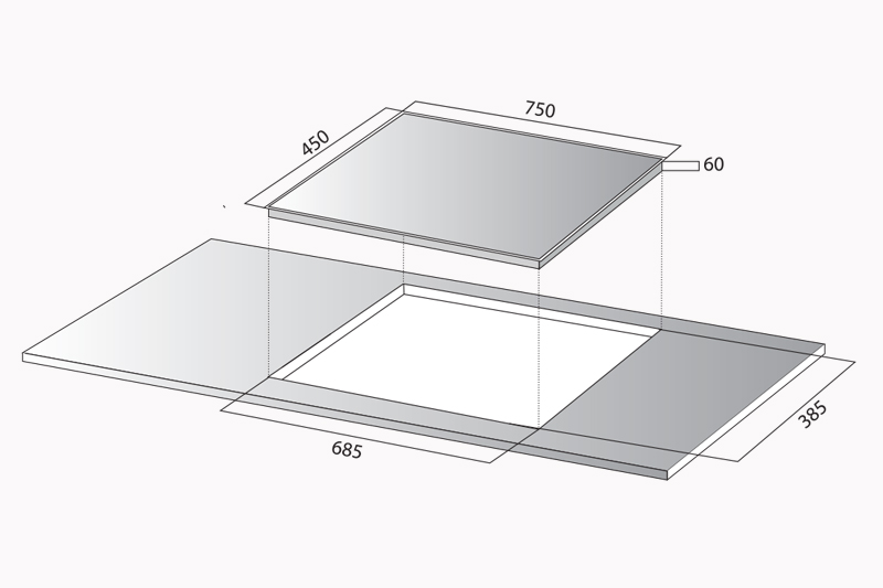 Bản vẽ kích thước Bếp từ đôi KOCHER DI-806GE02