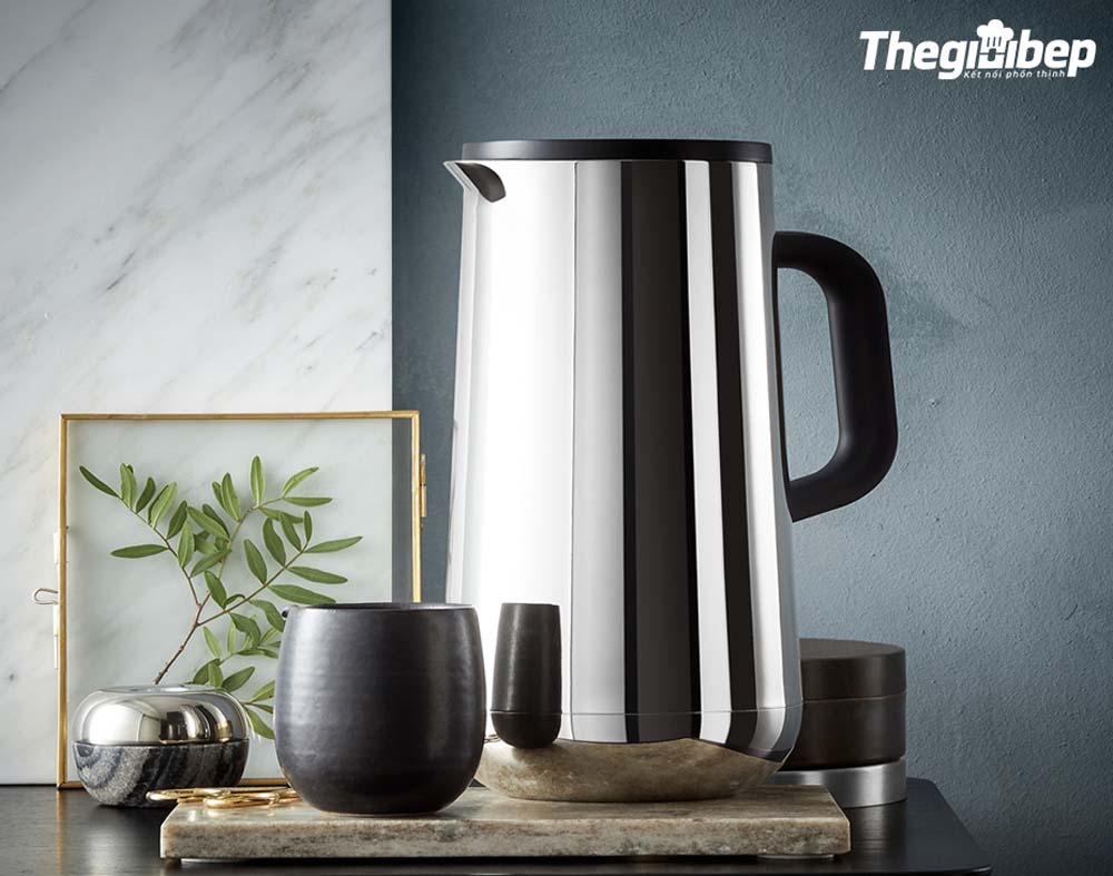 - Chất liệu cao cấp: Bình được sản xuất từ chất liệu thép không gỉ Cromargan 18/10 chất lượng cao, giúp bình có độ bền bỉ cao và màu đen thời thượng. Đồng thời, nắp bình cũng được làm bằng nhựa chắc chắn, đi kèm với silicon để đảm bảo sự kín khít và độ an toàn khi sử dụng.