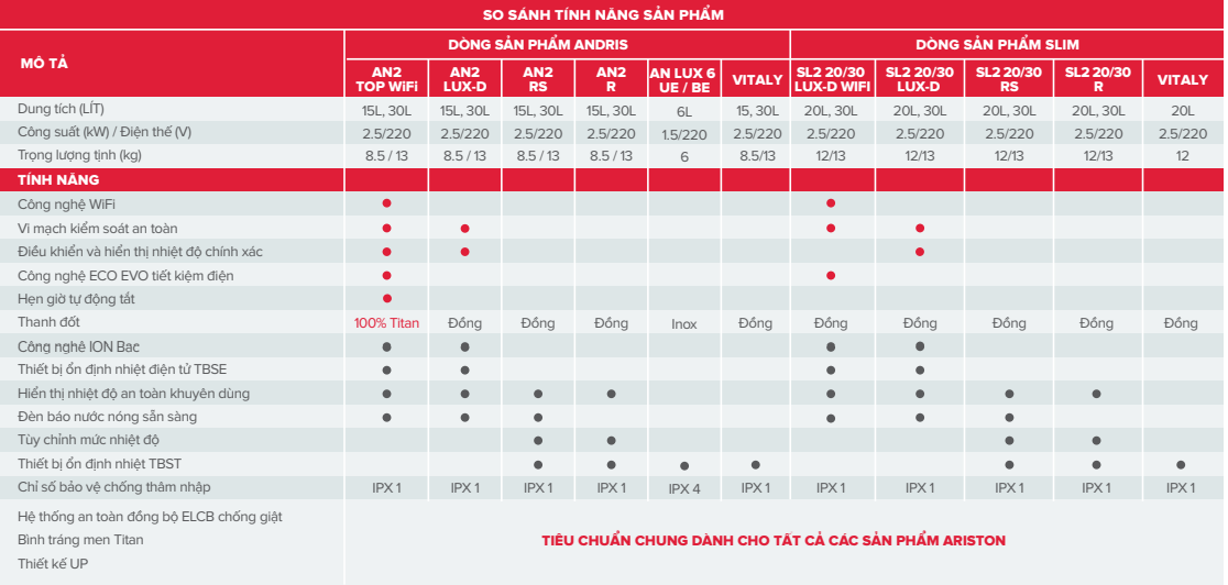 so-sánh-tính-năng-các-dòng-bình-nóng-lạnh-ariston