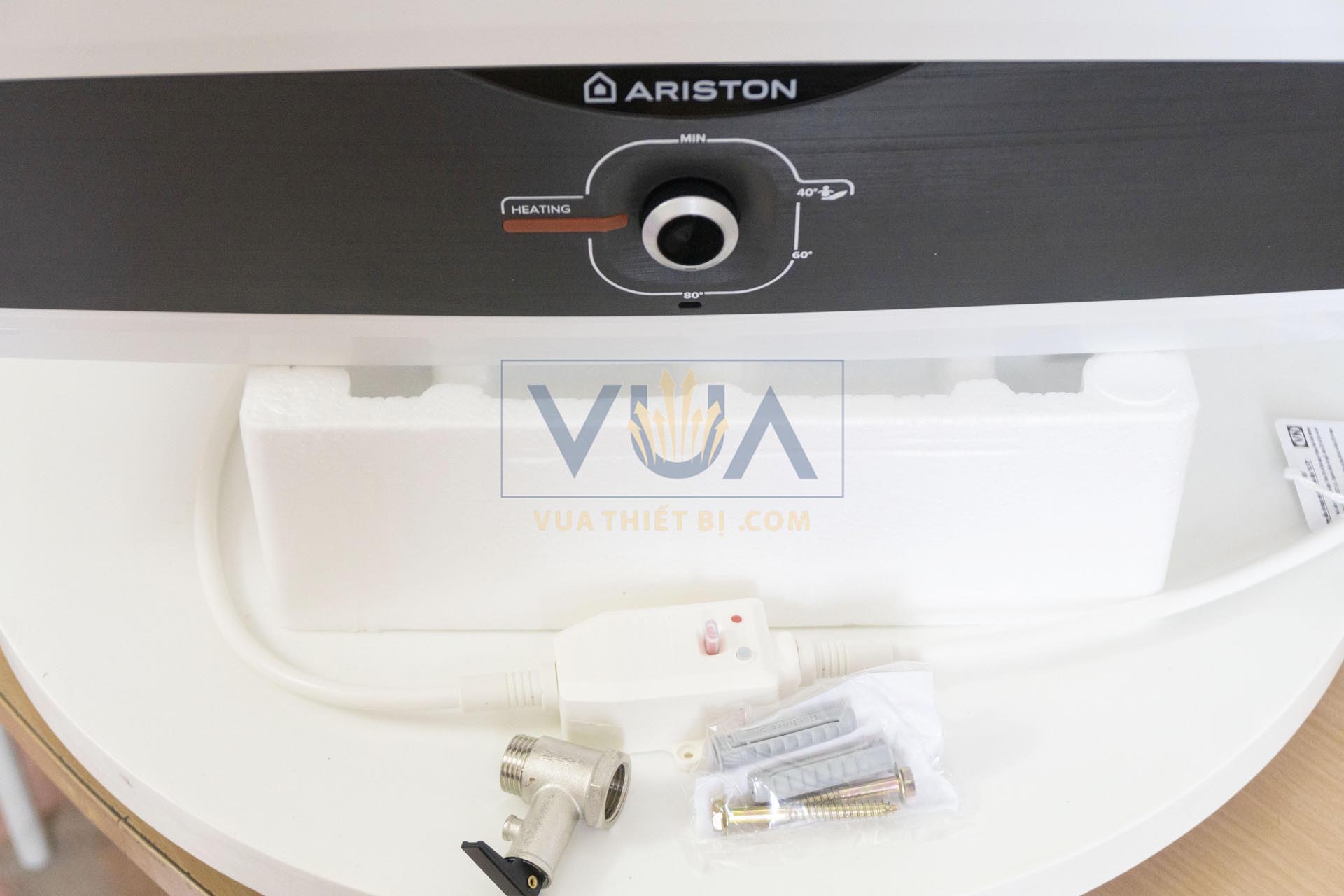 phụ kiện đi kèm mặt trước Bình nóng lạnh ARISTON SLIM2 SL2 R 20L lít ngang gián tiếp 2.5FE 2500W