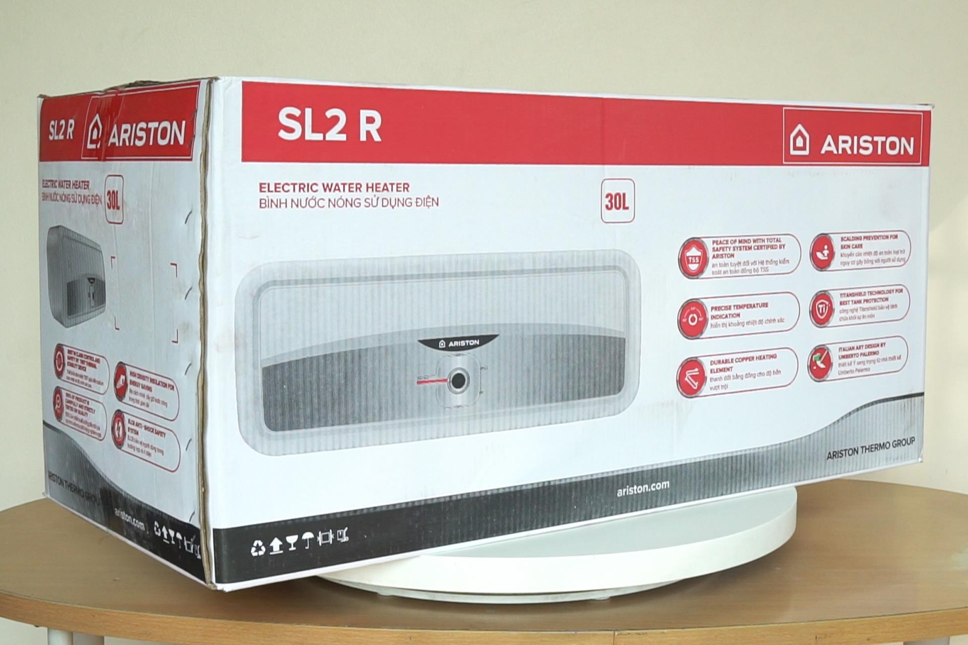 Hình ảnh thực tế Bình nóng lạnh ARISTON SL2 20 R 20L lít (slim2) ngang gián tiếp 2.5FE 2500W