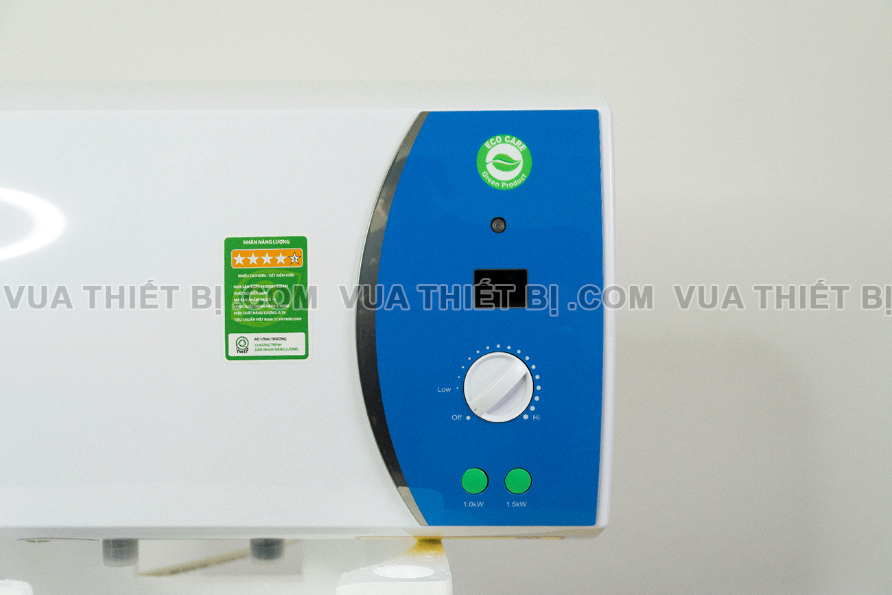 - Nhanh chóng thay đổi công suất làm nóng của bình nóng lạnh với hệ thống nút bấm chỉnh 3 công suất 1000w 1500w và 2500w.