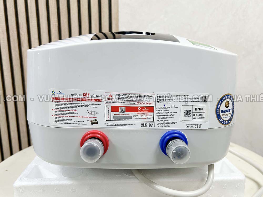 - Thời gian bảo hành: 7 năm bình chứa, 1 năm linh kiện điện