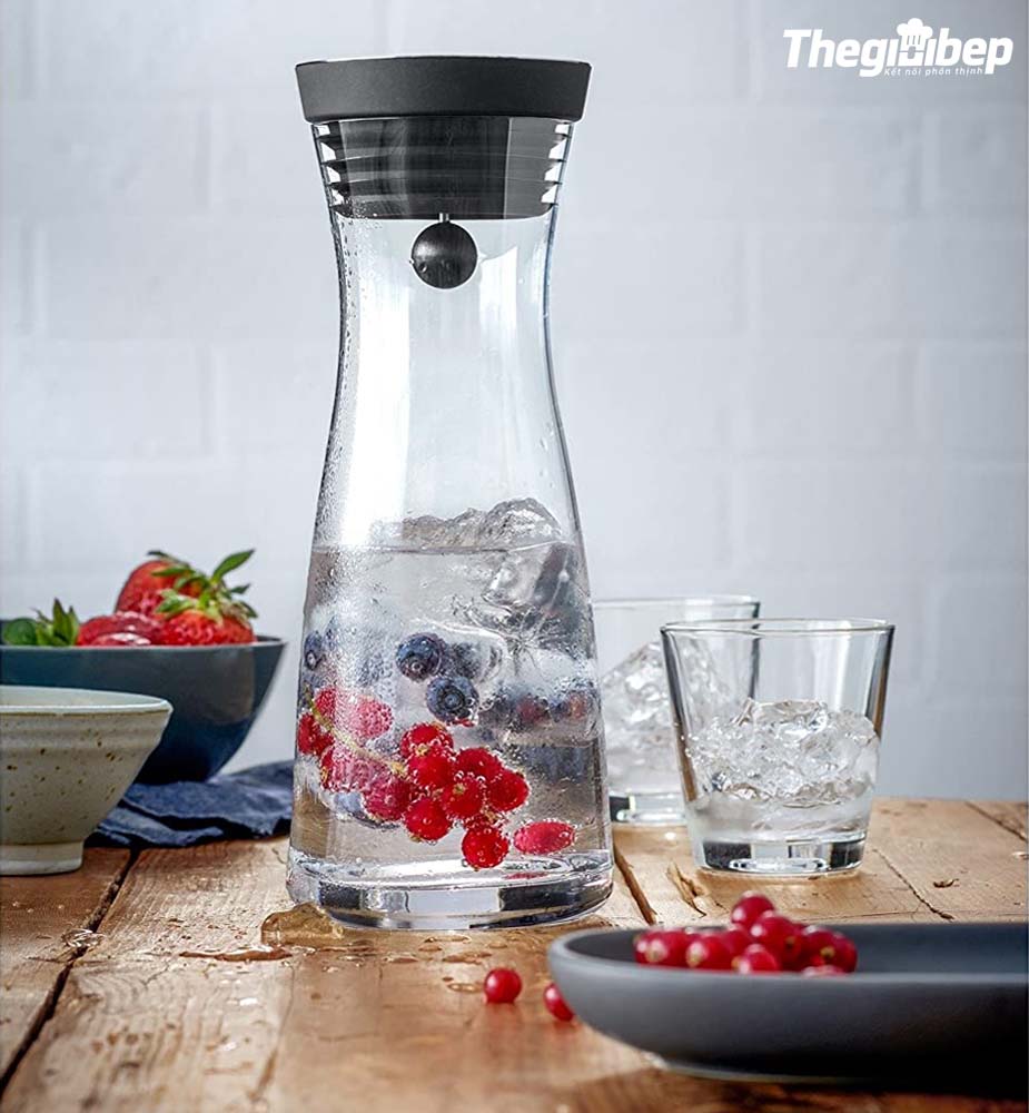 - Lưới lọc tích hợp: Bình đi kèm với lưới lọc tích hợp trong nắp, hoàn toàn có thể tháo rời và an toàn cho máy rửa chén. Lưới lọc này giúp giữ lại các miếng đá và trái cây trong quá trình rót nước.