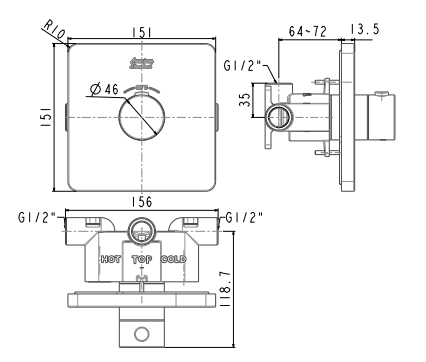 Bản vẽ kỹ thuật Bộ trộn vòi sen âm tường American Standard FFAS0930HG dòng EasySET