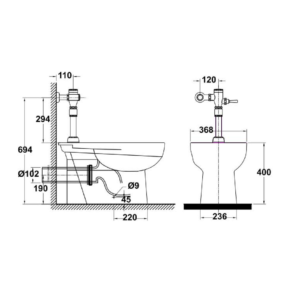 - Kiểu sản phẩm: bồn cầu van xả trực tiếp