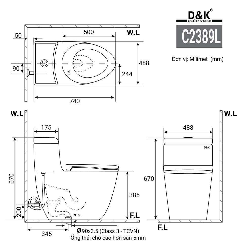 Thông số kĩ thuật Bồn cầu 1 khối D&K DK-C2389L/GS2389L