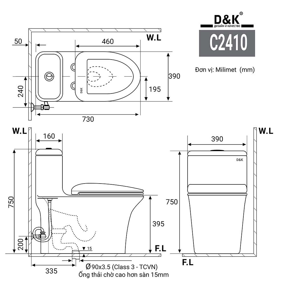 Thông số kĩ thuật Bồn cầu 1 khối D&K DK-C2410/GE2410