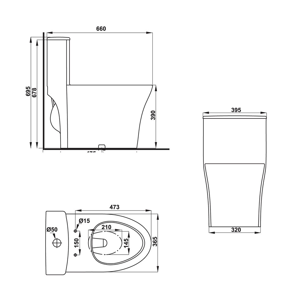 Bản vẽ kích thước Bồn cầu 1 khối HAFELE SAPPORO 588.79.409 .