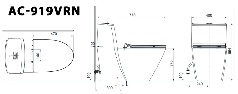 Bản vẽ kĩ thuật Bồn cầu 1 khối INAX AC-919VRN Aqua Ceramic nắp êm