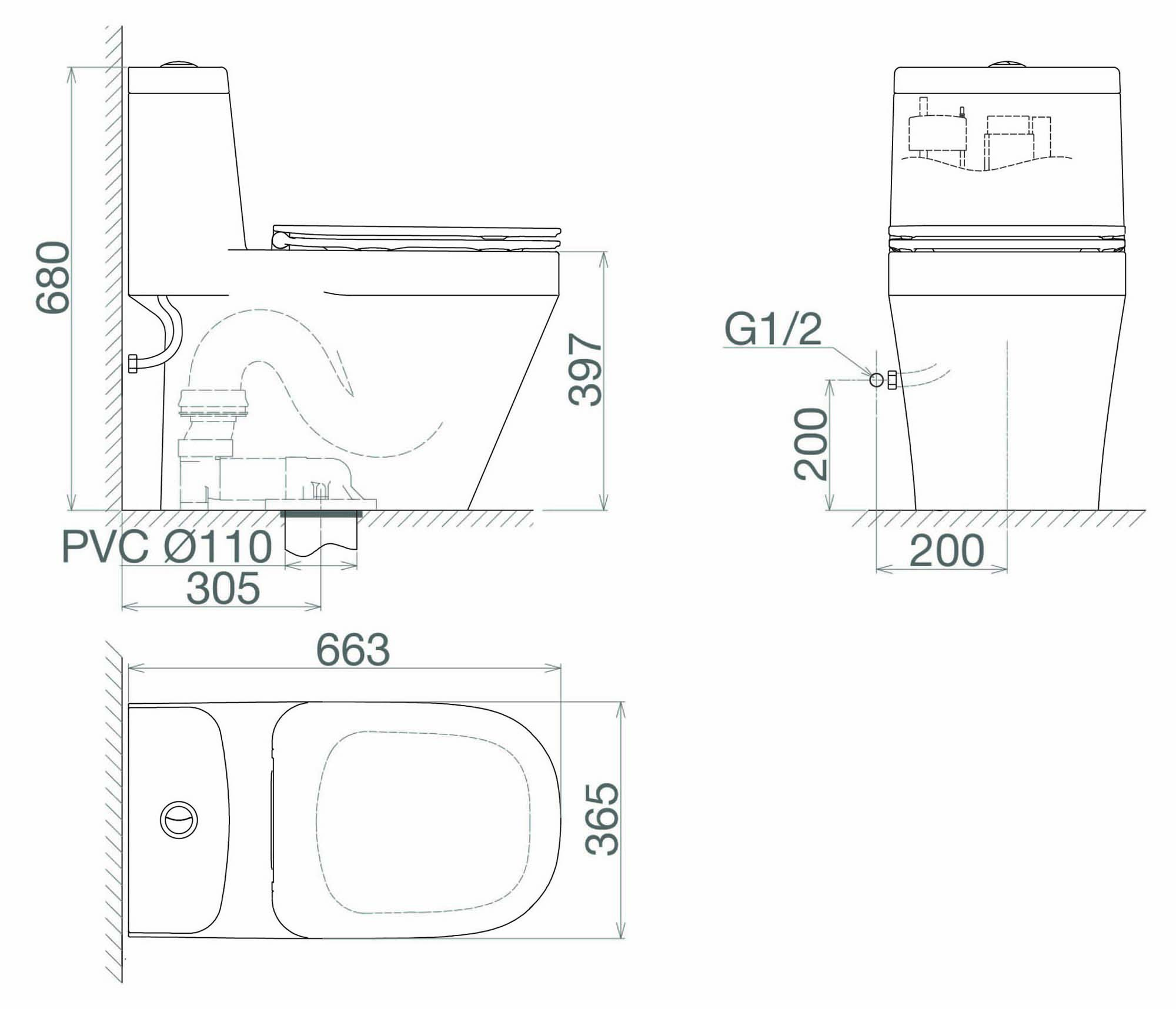 Bản vẽ kĩ thuật Bồn cầu 1 khối VIGLACERA V68 nắp êm