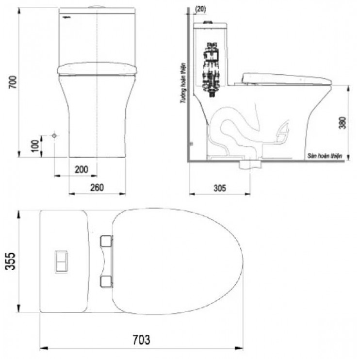 Thông số kĩ thuật Bồn cầu 1 khối VIGLACERA V700 FANSIPAN nắp êm
