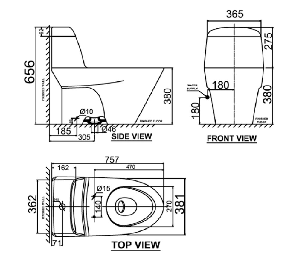 Bản vẽ kỹ thuật Bồn cầu 1 khối AMERICAN STANDARD VF-2011 Dòng ACTIVE nắp êm