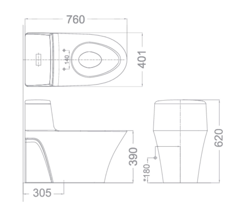 | Kích thước bồn cầu : | 760x383x620mm |