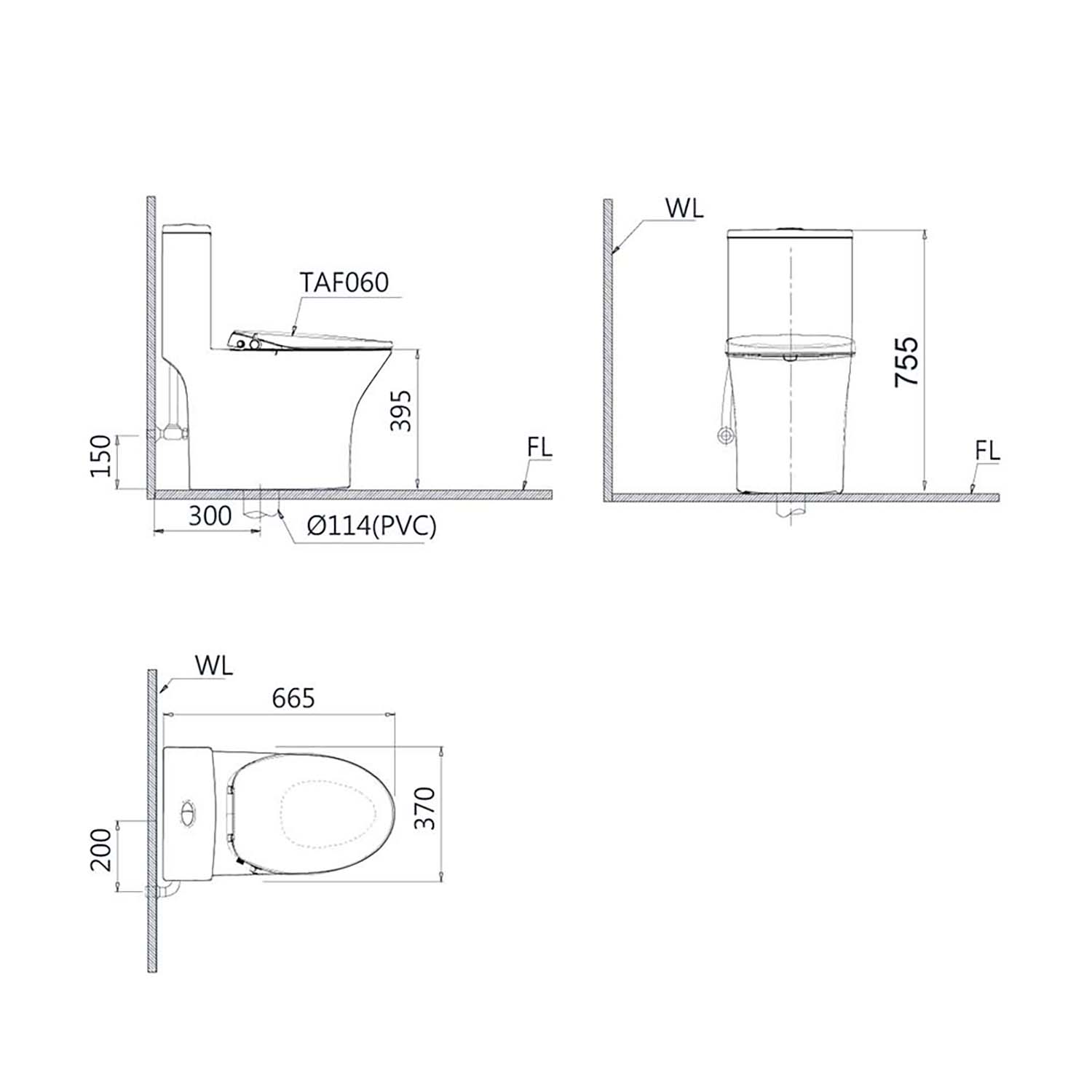 Bản vẽ kĩ thuật Bồn cầu thông minh CAESAR C1391F TAF060 nắp rửa cơ