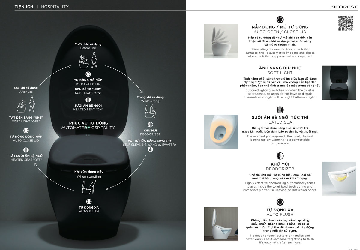 - AUTO OPEN CLOSE LID: nắp bệt tự động đóng mở mỗi khi phát hiện chuyển động của người dùng