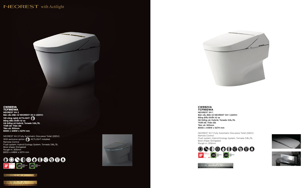 Thông số kĩ thuật Bồn cầu thông minh TOTO CW993VA TCF993WA T53P100VR Neorest XH II
