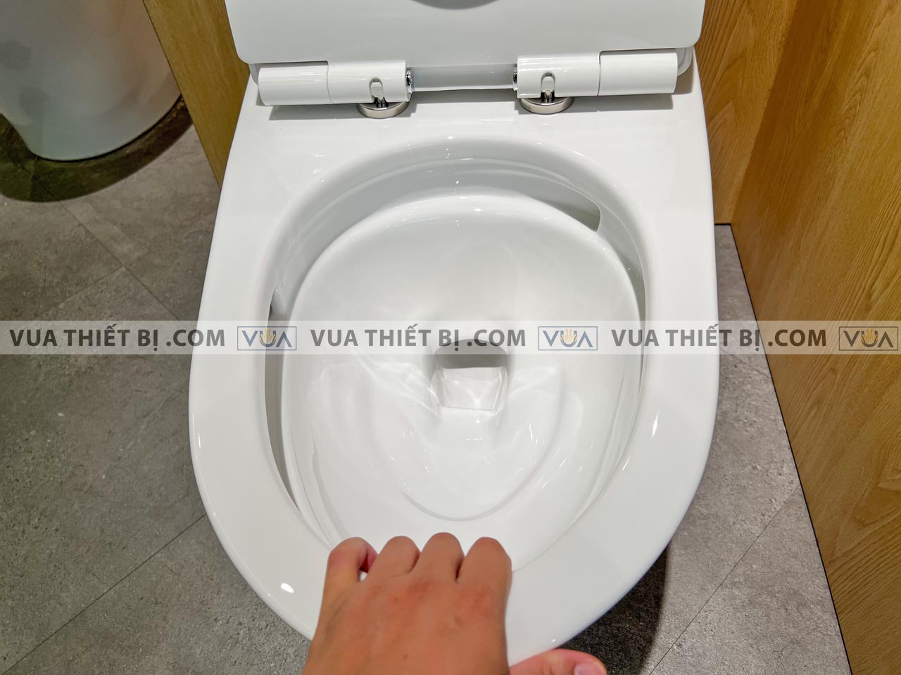- RIMLESS: bồn cầu được thiết kế vành kín không có chỗ cho vi khuẩn, chất thải bám vào giúp dễ dàng vệ sinh hơn