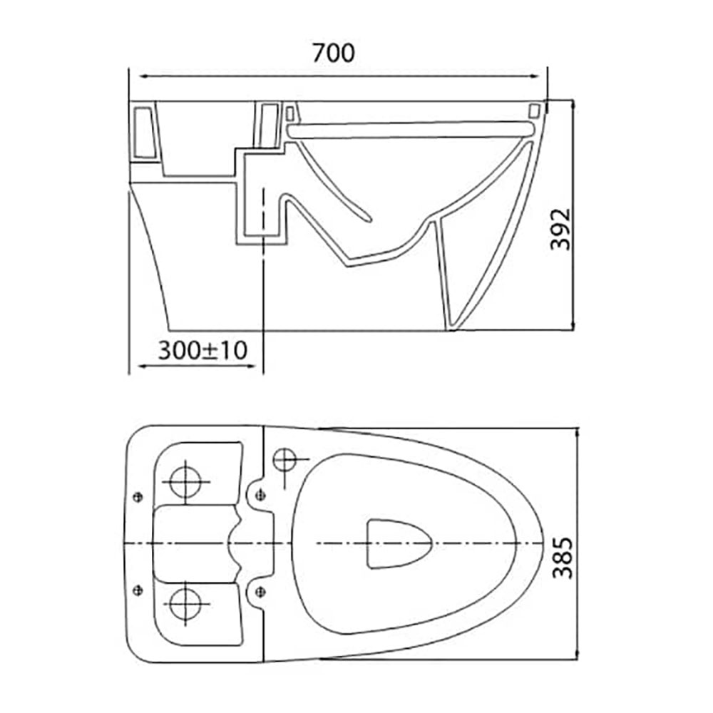 - Tâm thoát: 300 +- 10mm