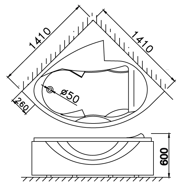 Bản vẽ kĩ thuật Bồn tắm CAESAR AT 5140A góc xây 1.4M