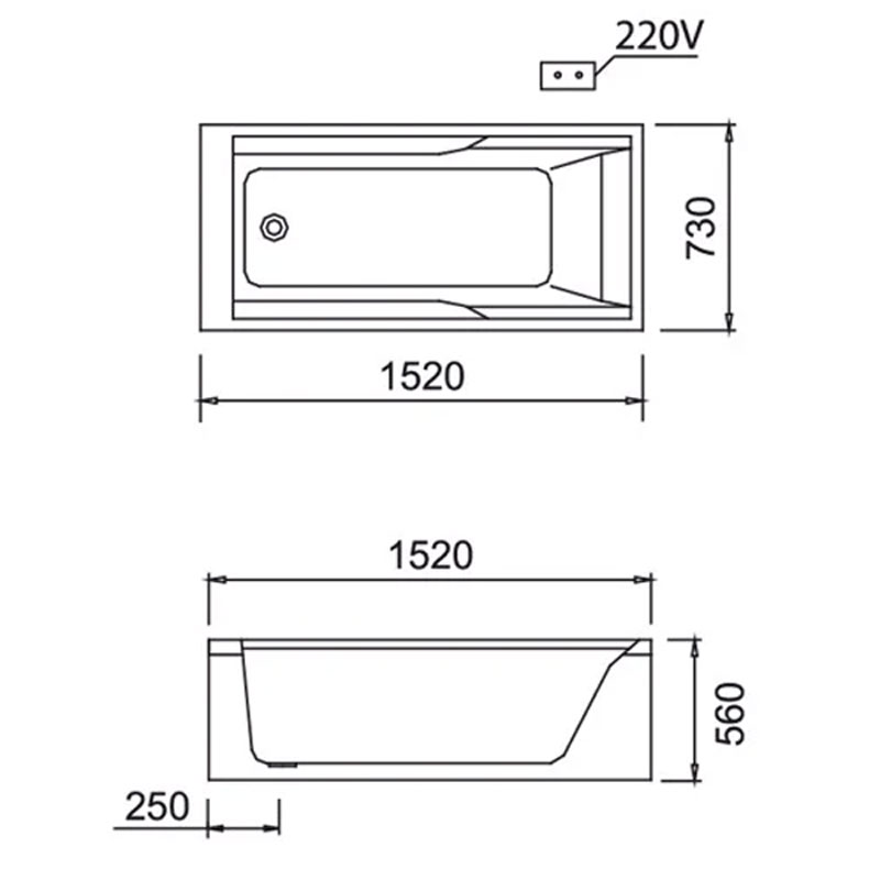 - Loại bồn tắm: bồn tắm chân yếm tích hợp hệ thống massage thuỷ lực