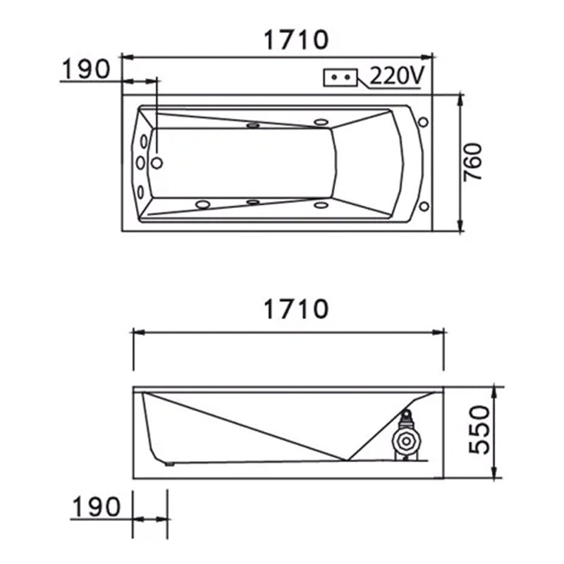 - Loại bồn tắm: bồn tắm chân yếm tích hợp hệ thống massage thuỷ lực