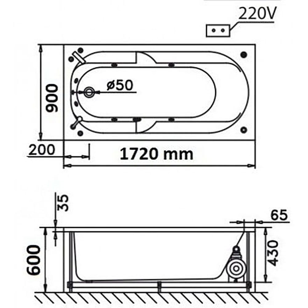 - Bao gồm: thân bồn tắm, hệ thống massage thuỷ lực, bộ xả