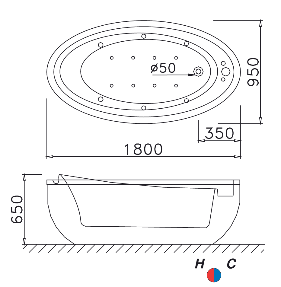 Bản vẽ kĩ thuật Bồn tắm CAESAR MT6480 Massage lập thể 1.8M