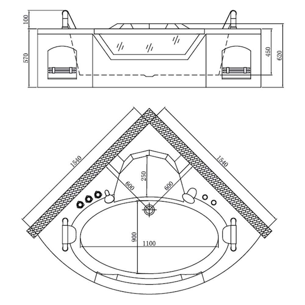 Bản vẽ kích thước D&K DK-Q312N – Bồn tắm yếm massage